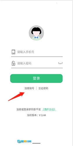 打开该软件,进入登录界面后,点击下方的“注册账号”选项。
