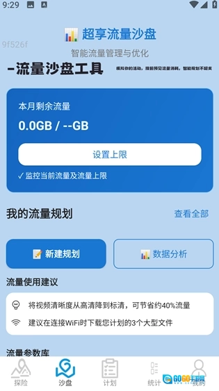 最后点击下方的沙盘工具,还能够设置流量上限,创建新的流量使用规划等。