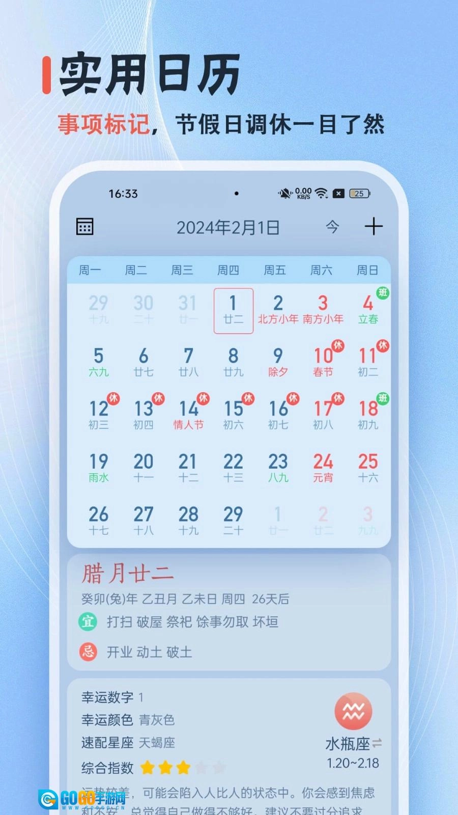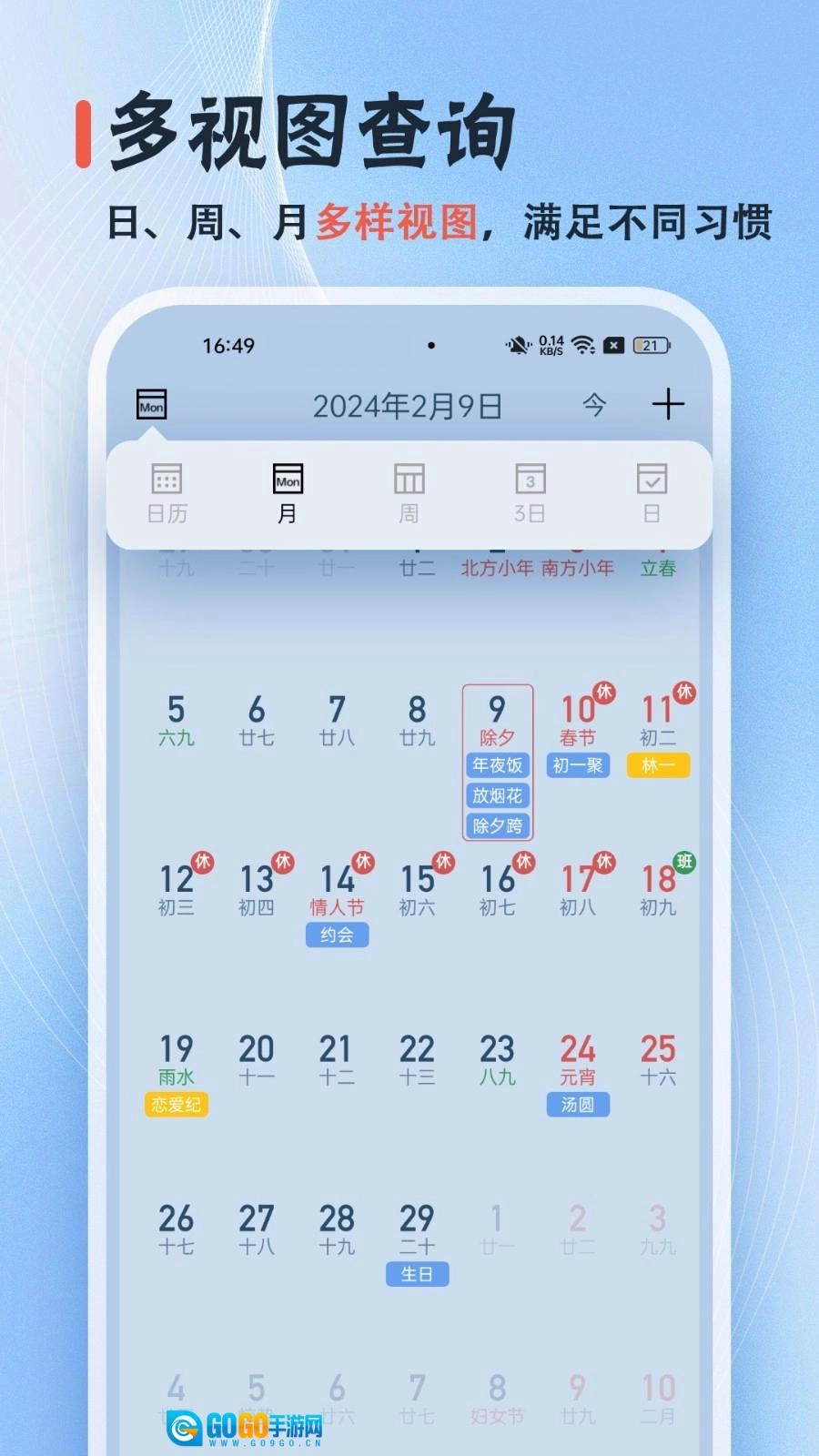 不只是日历,像节日、节气、农历这类信息内容,也都能随时进行查看。