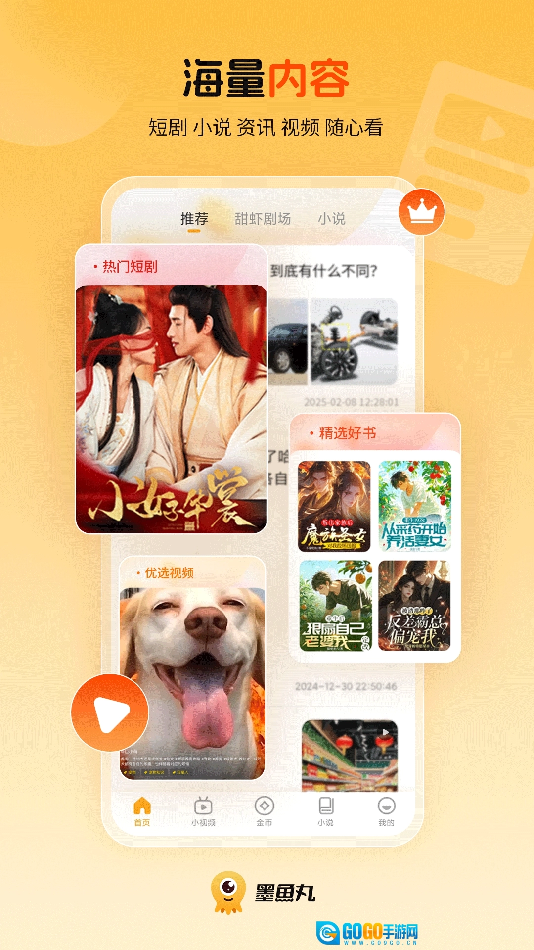墨鱼丸免费最新版是温州市迅驰数码科技有限公司打造的手机休闲娱乐应用,汇聚新闻资讯、手机视频、网络小说等多元内容,支持随时随地刷视频,不仅操作简单便捷,内容也十分丰富,涵盖美食、搞笑、萌宠等各类小视频,能为你带来满满的乐趣,使用体验更轻松!