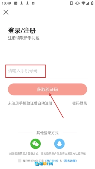 在登录或注册页面,输入手机号码后,点击“获取验证码”按钮。