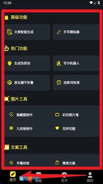 2、首页提供文章生成、手写模拟、写作机器人等多种功能,可直接选择所需工具进行使用。
