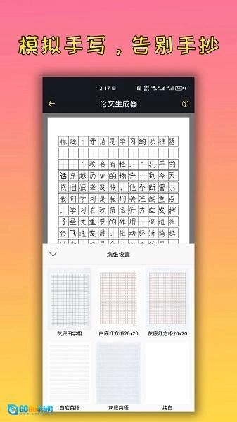 手写模拟功能:该功能手写模拟器,支持自定义字体样式、笔迹颜色与纸张背景效果,能生成高度逼真的手写草稿,帮助用户省去手工誊抄的繁琐步骤。