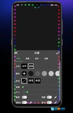手持弹幕宝具备多样实用功能,助您打造专属的个性化弹幕效果。您可按需将背景色设置为纯色、图片或视频,挑选各类边框动画与挖孔屏动画,还能调节文字的滚动方向、速度、闪烁状态、左右震荡效果,以及字体的颜色、样式、大小、阴影和发光表现。另外,您也可以借助自定义模板发送弹幕,同时体验背景音乐带来的惬意感受。