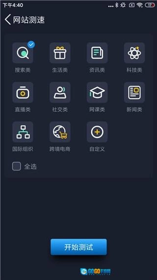 像网站这类选项,点击后就能挑选搜索类、生活类、资讯类等不同内容,既可以单选也能多选,具体根据需求来定。当然,用户还能自行设置网址开展测试,操作起来十分灵活。借助这一功能,用户能够体验到自己在使用宽带时不同场景下的网络状况,更贴合实际使用情况。