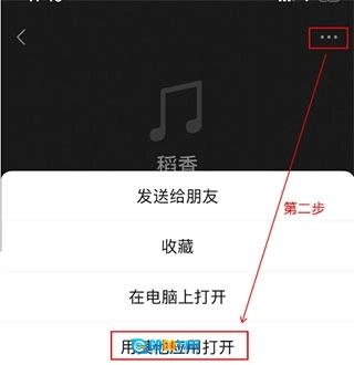 在微信里播放音乐时,点击右上角的按钮,然后选择“用其他应用打开”这个选项。