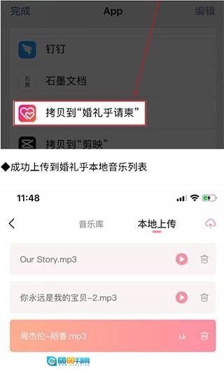 成功上传到婚礼乎本地音乐列表。