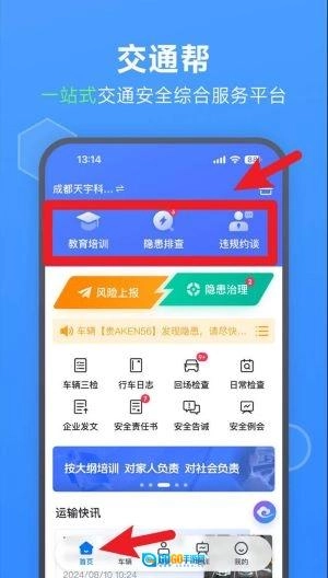 打开交通帮首页后,点击“教育培训”“隐患排查”等对应模块,就能迅速进入各项交通安全服务的操作界面。