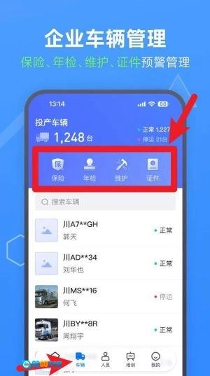 进入车辆管理页面后,可借助顶部的分类标签,选取“保险”“年检”等模块,对对应车辆的相关信息进行查看与管理。