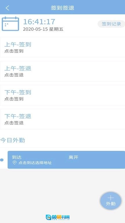 支持外勤打卡功能,即使用户正在出外勤,也可以在此完成签到和签退操作。
