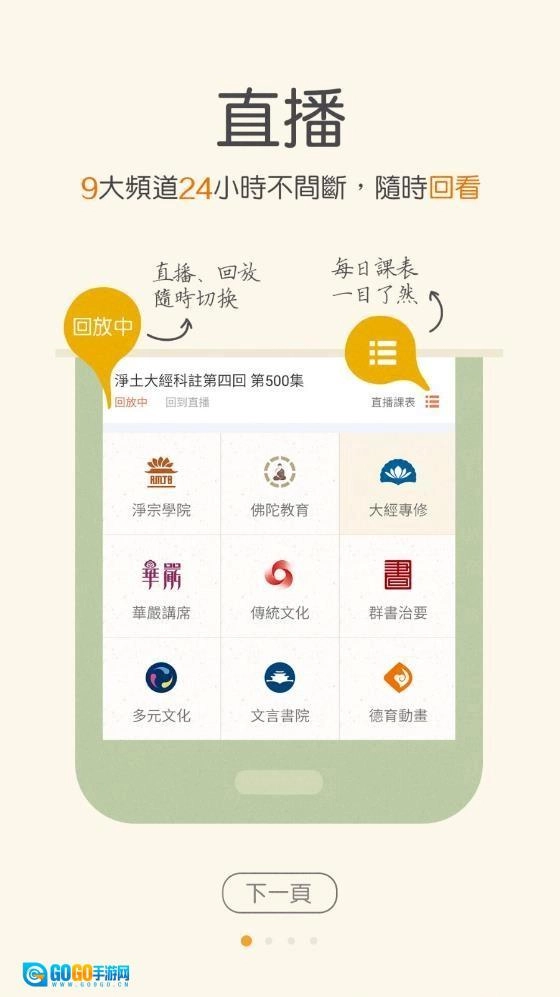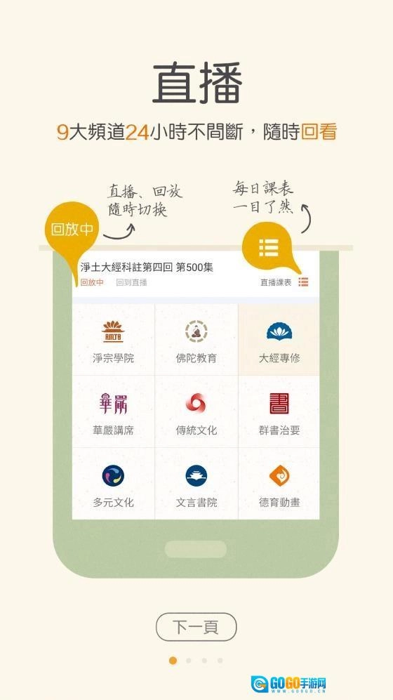 你可以在这里感受历史悠久的佛教文化,以及各类实用又有趣的讲堂内容,选择完全由你决定。9大频道全天候不间断直播,无论何时何地都能观看。