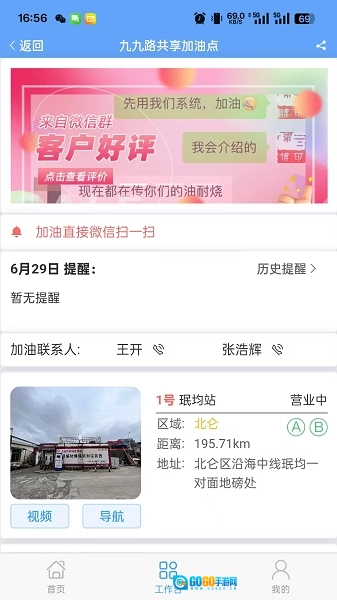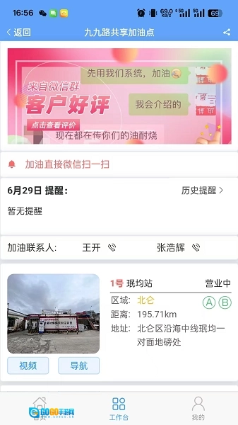 输入目的地信息后,应用会进行实时在线导航,并且还能查看共享加油相关内容。