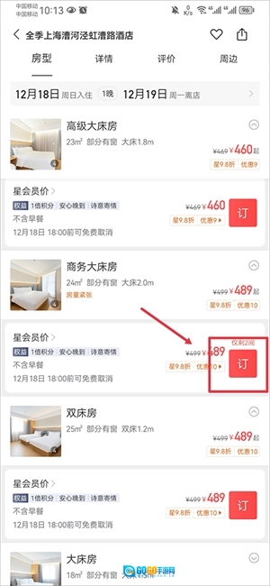 选好心仪的酒店后,进入酒店详情页面,找到你喜欢的房型并选中,接着点击预订按钮就可以了。