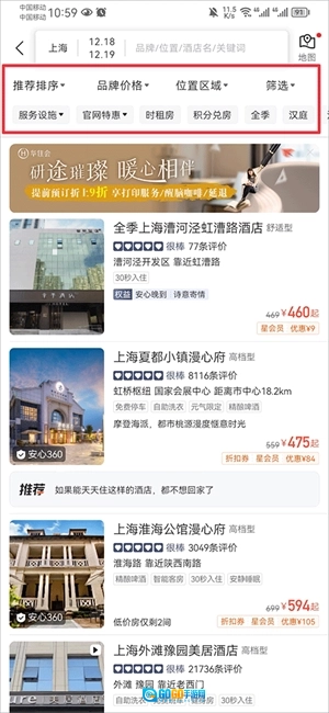 用户能够依据品牌价格、位置区域、入住类型等条件筛选出合适的酒店。