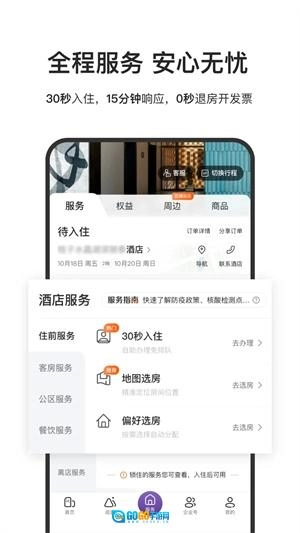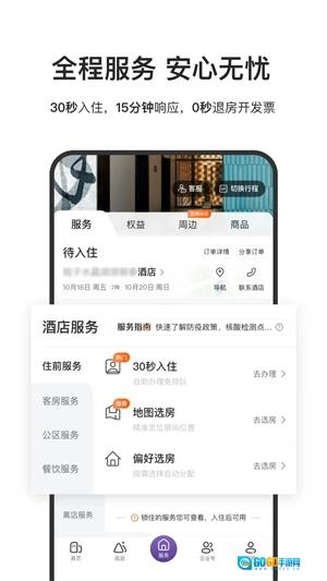 将依据行程安排,提供酒店、机票、火车票一站式行程辅助服务,涵盖全程自助功能:选房、续住、一键开票、入住办理、零秒退房以及航班动态查询等。