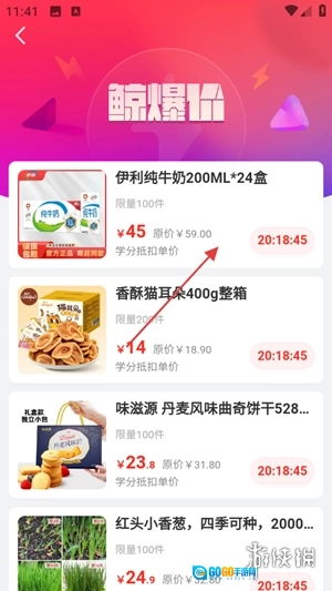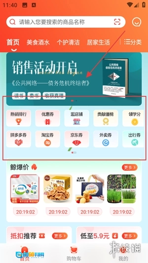 打开手机购物APP,在首页导航栏找到“限时鲸爆”这类促销活动的入口图标,点击进入就能看到所有特惠商品的汇总页面了。