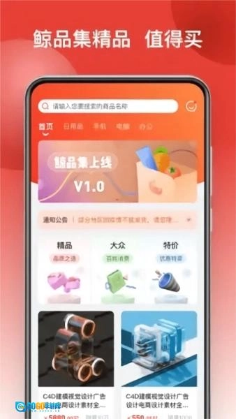 用户可以在应用商店里搜索“鲸品集”来下载这款应用,完成安装后,点击应用图标就能启动程序了。