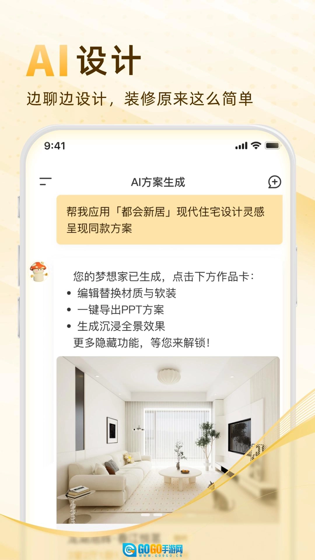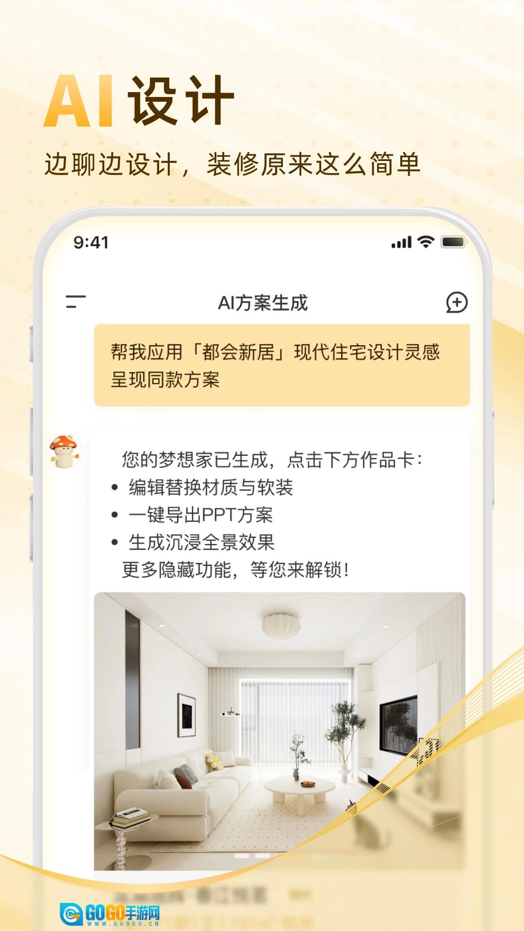 分享功能:支持把设计方案导出成PPT格式,便于保存与分享,增添了社交互动的趣味。