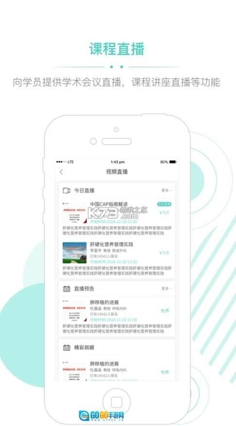 课程直播板块:为学员提供学术会议直播、课程讲座直播等服务功能。