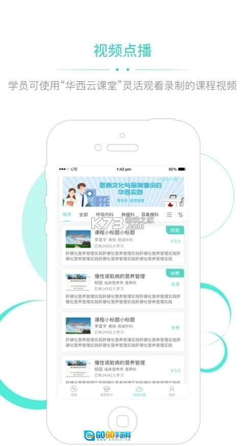 华西云课堂是一款实用的移动医学教育平台,汇聚了华西医院各领域专家教授的权威教学视频,涵盖病理学、传染病学、放射物理学、骨外科学、护理学等所有医学学科的教学资源。为助力学生提升学习成绩与专业实力,平台提供在线直播、视频点播、课件分享、课程讨论等多样化学习功能。借助这些灵活便捷的学习模式,平台能覆盖更广泛的医务人群,有效帮助医务人员全面提升业务水平。此外,系统可根据学员的医学学习需求,精准推荐适配课程,避免学员做无用功。用户还能在平台上轻松学习并掌握核心知识点,进而考取二级、三级医院管理专业证书,有需要的朋友不妨抓住机会,来平台学习以提升专业能力吧。
