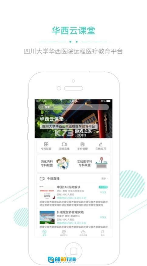 华西云课堂是四川大学华西医院打造的远程移动医疗教育平台。平台汇聚了华西医院专家教授的海量权威教学视频,教学资源全面覆盖行政、临床等各个岗位。针对学员,平台提供在线直播、视频点播、课件分享、课程讨论等多样化学习方式,并能根据学员的实际需求精准推荐课程内容。学员可通过该平台完成继续教育学习,通过考试测评后即可获取相应的继教学分。华西云课堂凭借灵活便捷的学习模式,能够辐射到更广泛的医务人群,从而实现全面提升医务人员业务水平的目标。