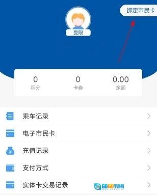 打开天骄通进入个人中心页面,点击“绑定市民卡”。