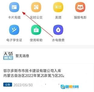 打开天骄通进入首页,点击“卡片充值”。