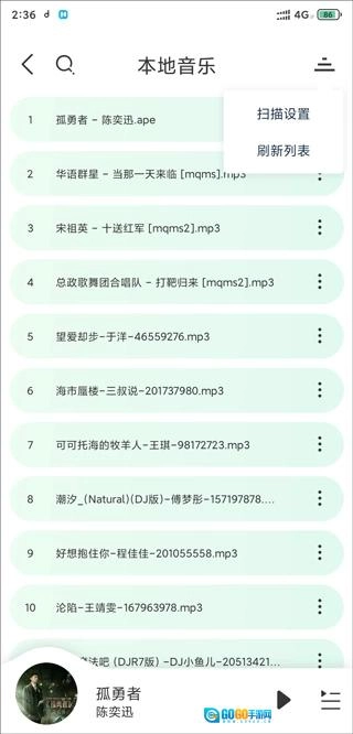 点击右上角的三条横线按钮,能够对本地音乐进行扫描设置,还可以刷新列表。