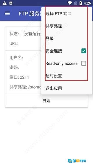 要是你想保障自己传输的安全性,还能点击右上角,设置FTP端口、文件共享路径、登录密码之类的内容。