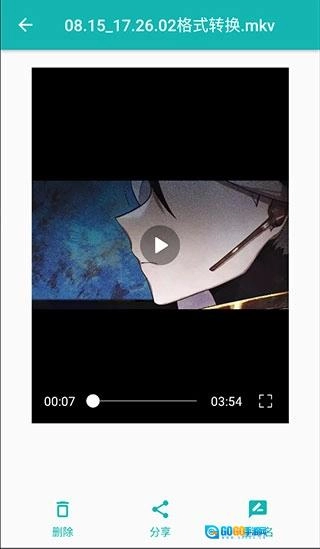等待几秒钟,格式就转换完成了,你可以直接分享视频,也能给视频重新命名。