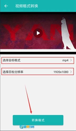 先选定想要转换的目标格式与目标分辨率,接着点击【转换格式】按钮