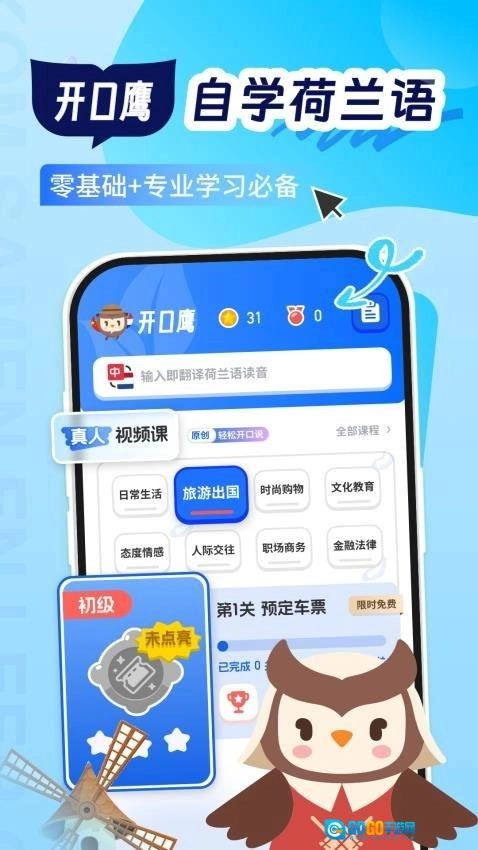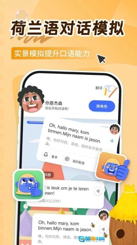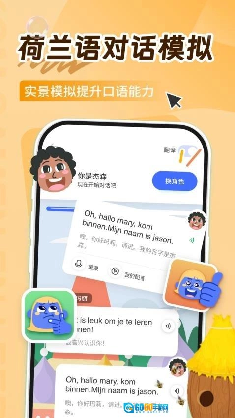用户能够和虚拟荷兰人开展情景对话,系统会智能评定发音的准确程度以及语法的正确与否。