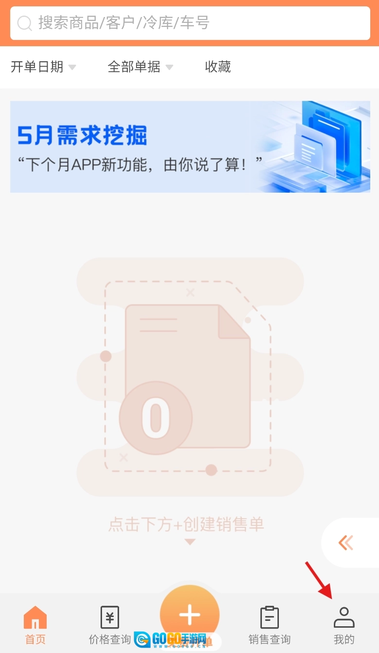 打开冻品开单王应用后,在首页的底部位置找到“我的”这一选项,点击它就能进入个人中心页面了。