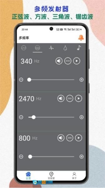 声音生成功能:该应用可覆盖从次声到超声的全频率范围,提供正弦波、方波、三角波、锯齿波等多种波形供选择。此外,它还能充当驱蚊器使用。