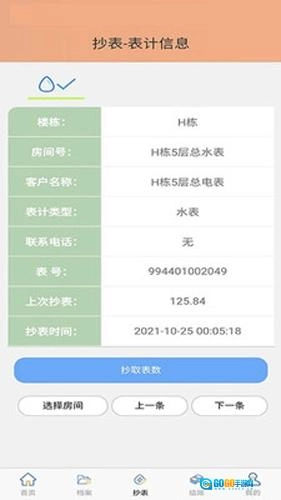 具备详尽的抄表详情,涵盖地址、楼栋、房间号、表具编号、上次读数、抄表日期等信息。