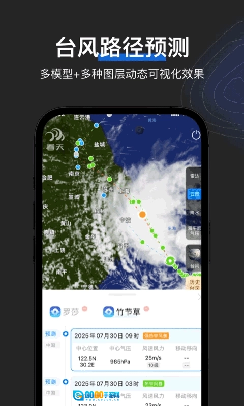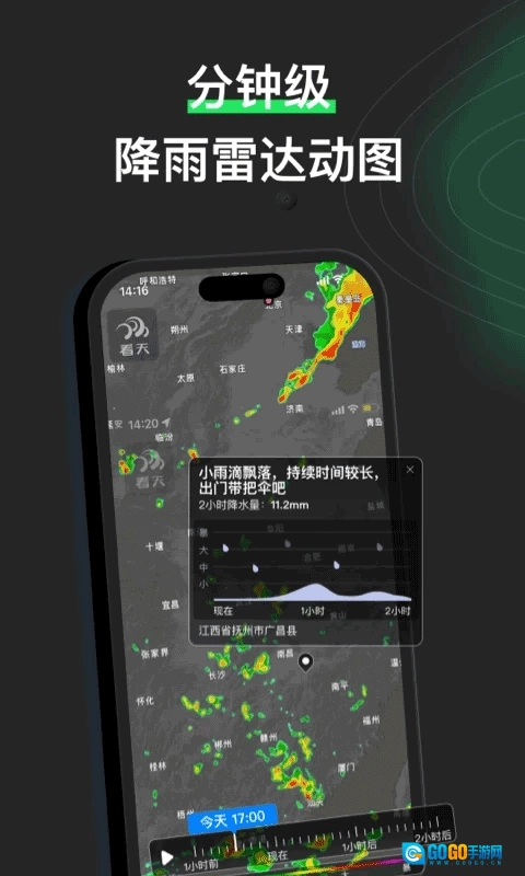 有雨的时候,查看分钟级、公里级的精准降雨预报,还有全新升级的雷达配色;没雨的话,就切换上帝视角俯瞰云图,全国天气状况尽收眼底。