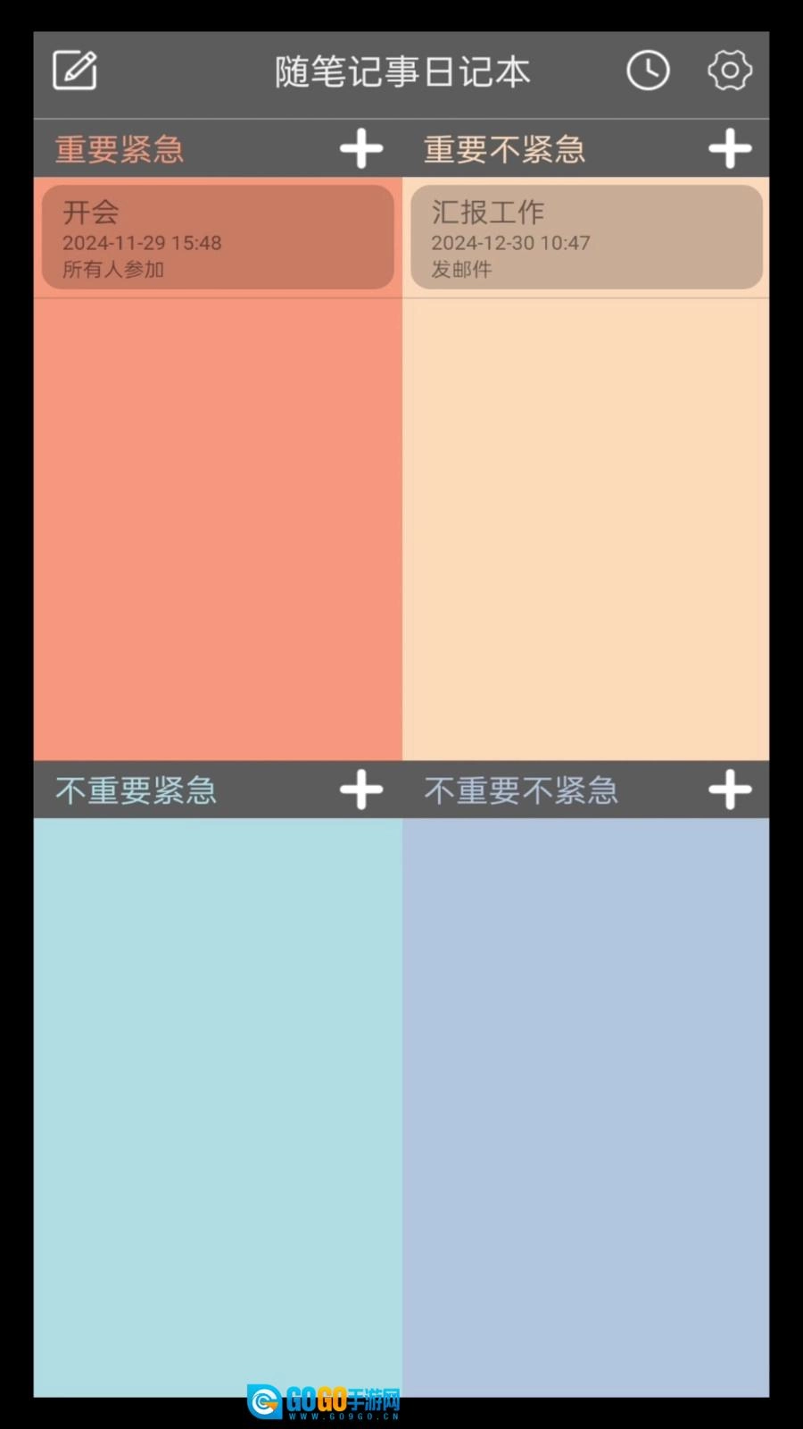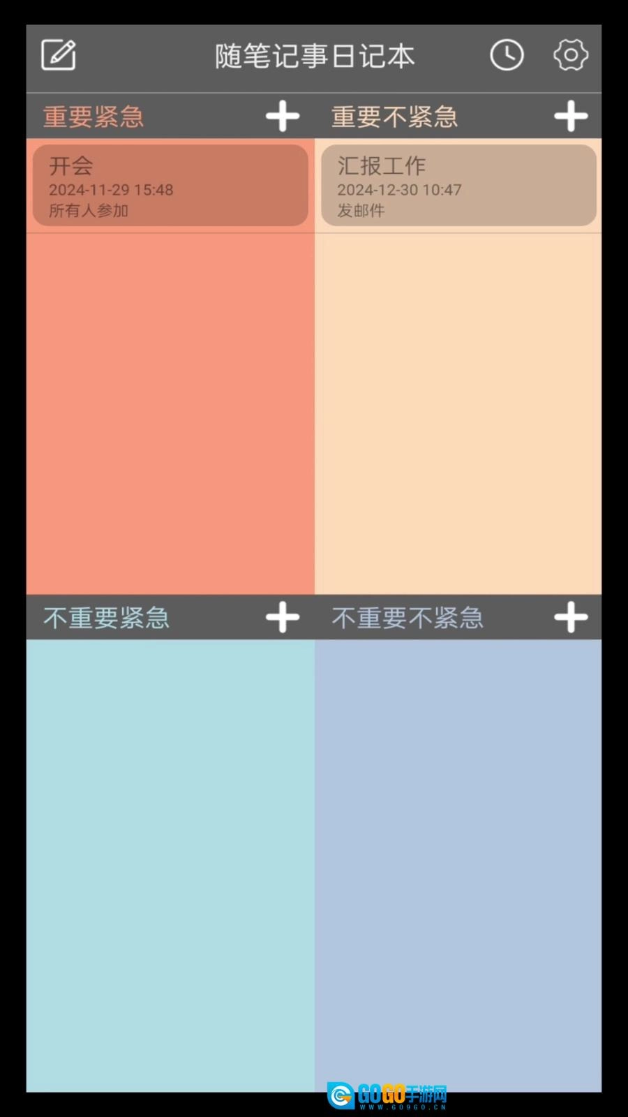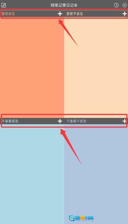 主界面上设有四个模板,分别是重要紧急、重要不紧急、不重要紧急以及不重要不紧急。