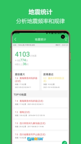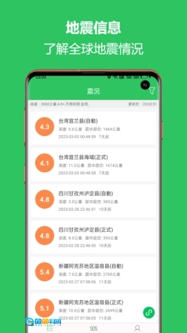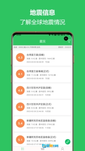 软件支持选择定位城市或手动添加关注的地区,一旦这些区域发生地震,地震预警助手会立即通过推送通知将信息发送到用户手机,让用户第一时间知晓地震情况并及时采取应对措施。实时查询是该软件的另一项核心功能,它以列表和地图两种形式呈现全球范围内的实时地震信息。用户可根据自身需求,对地震的范围、发生时间和震级进行筛选,从而更精准地获取所需的地震资讯。