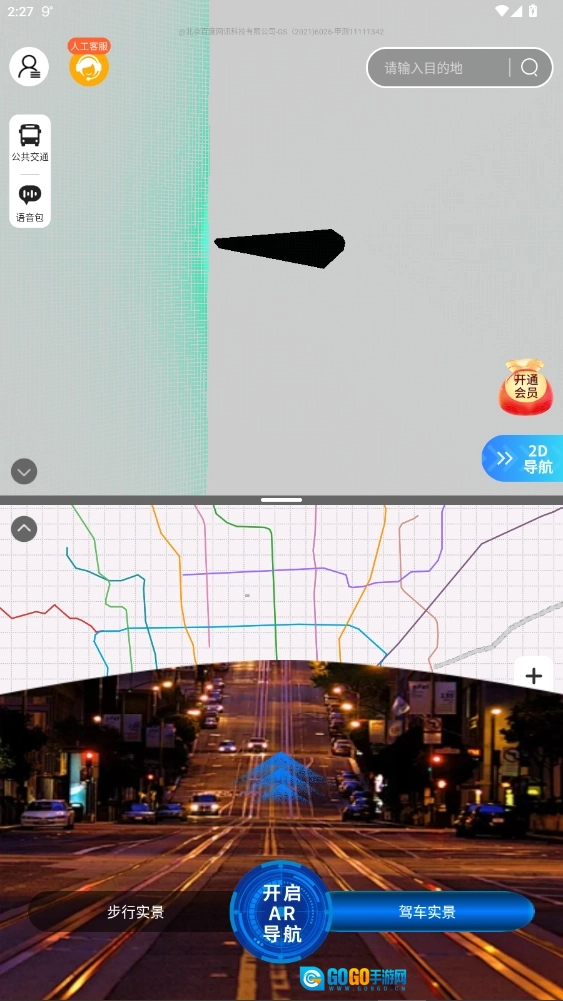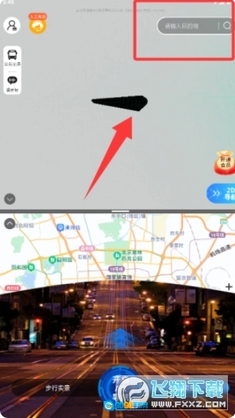 打开实景卫星导航软件后,授予定位权限,首页就会自动锁定你的当前位置,并呈现出周边区域的实景地图画面。
