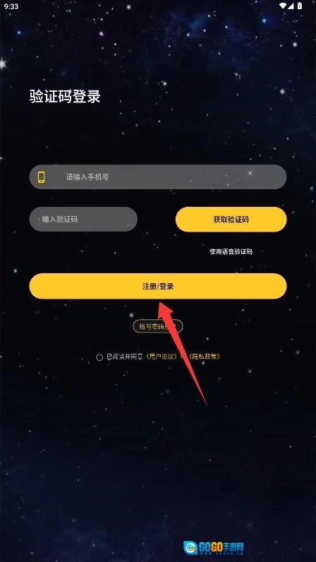 首次使用时,需先通过手机号获取验证码来完成注册登录流程,在输入验证码并勾选用户协议后,即可进入应用。