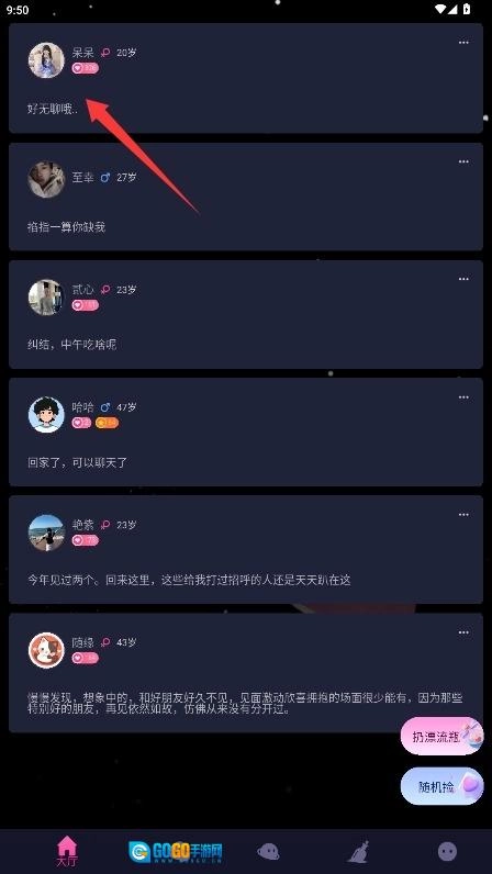 在首页的漂流瓶大厅里,你可以浏览系统随机推荐的漂流瓶内容,也能查看其他用户的留言。