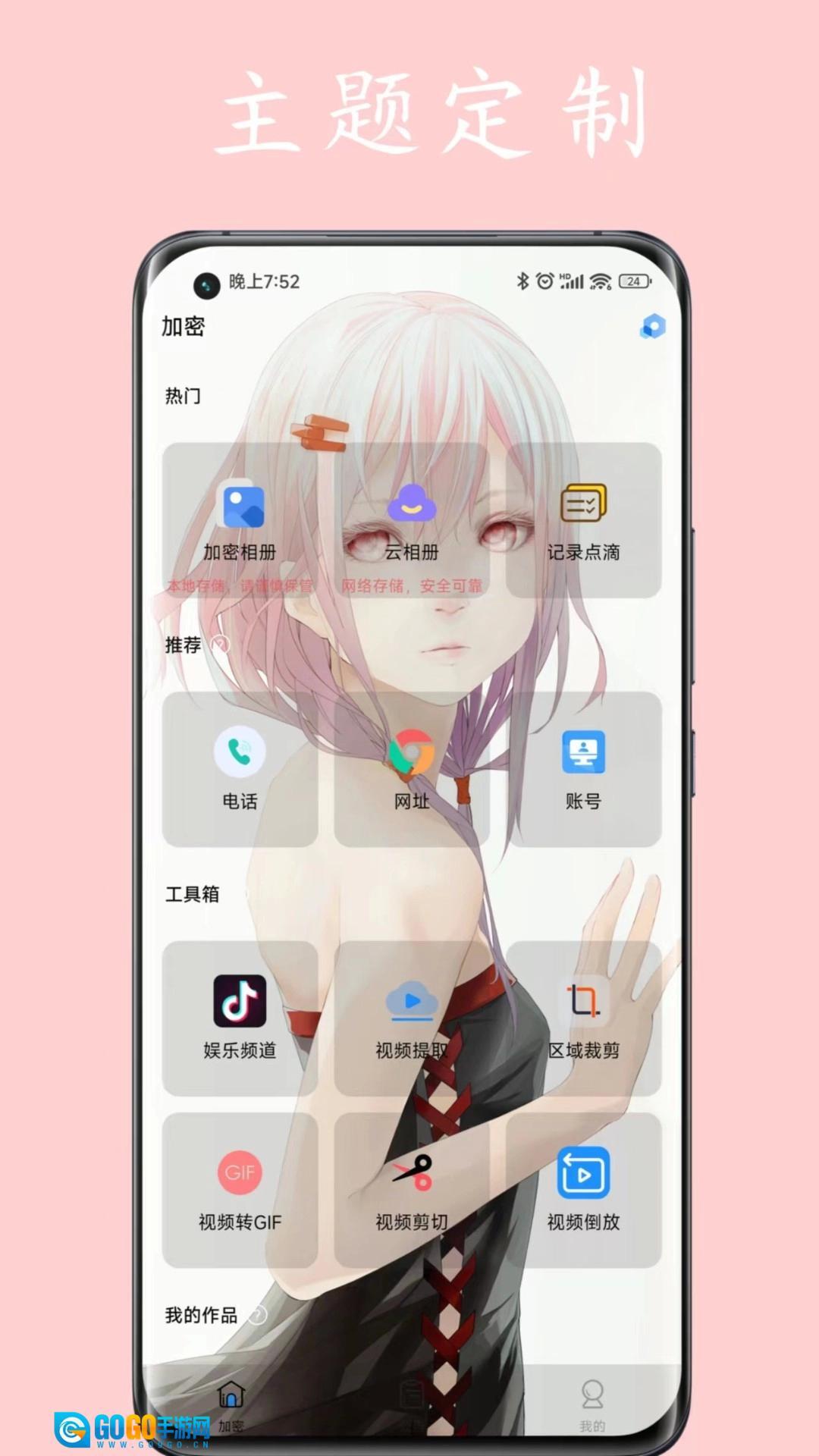 私人空间是一款功能强大的照片加密实用工具箱,无需登录即可直接使用,首次进入需设置密码才能访问。它整合了加密相册、加密电话、网址与账号管理等功能,还配备了实用的娱乐工具,支持视频提取、转换及编辑等操作,并且允许用户自定义软件主题和皮肤。