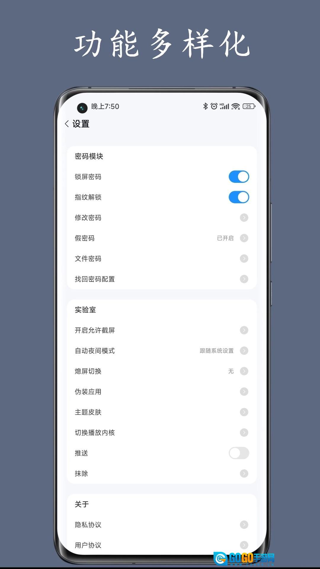 支持隐身功能,能够隐藏私密空间对应的软件图标,这样桌面上就不会显示该图标,避免他人察觉你正在使用这款软件,从而提升保密安全性。