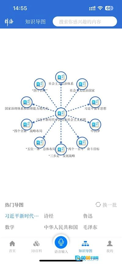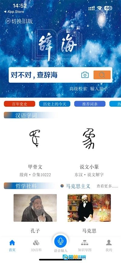 在首页,你能看到辞海最基础的搜索功能,还有一些知识体系的推荐内容。