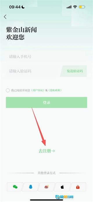 在登录界面,选择“去注册”选项,即可跳转至新用户注册页面。