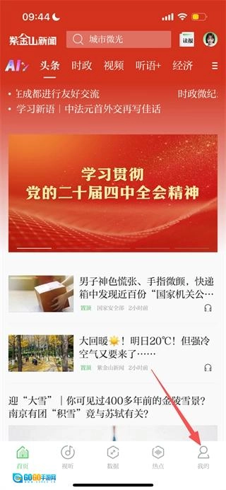 在紫金山的首页,点击底部的“我的”选项,即可进入个人中心页面。