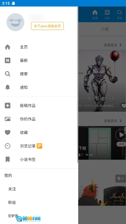 打开Pixiv应用,点击屏幕左上方的三条横线图标。