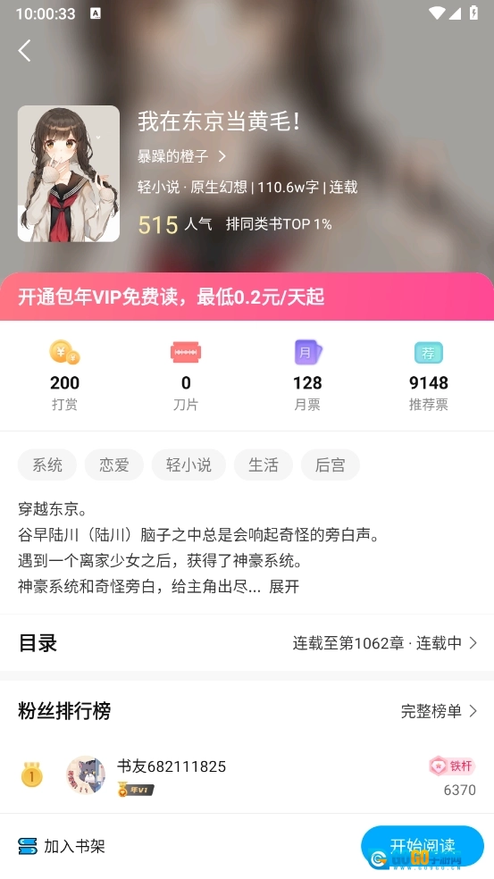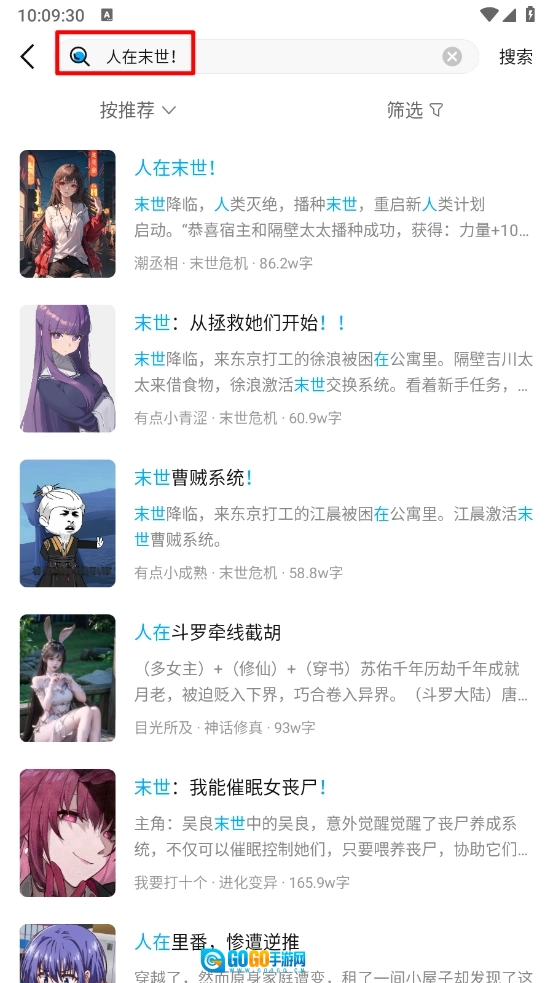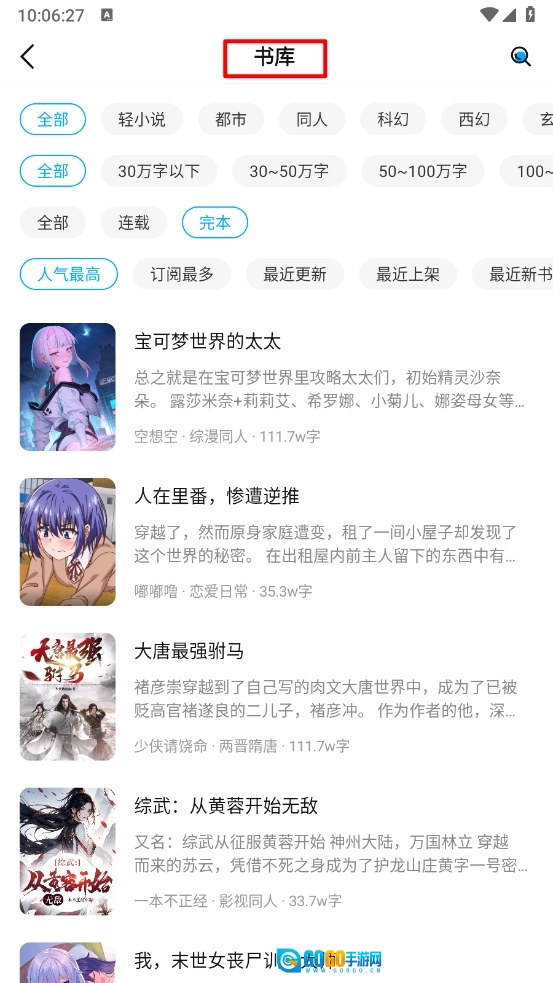 点击“完本”按钮进入,就像图里展示的那样,在书库中就能筛选出自己喜欢的小说。