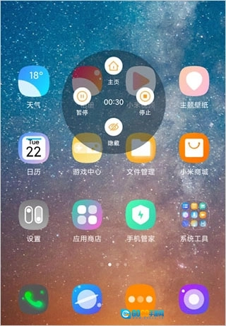 点击中间的按钮开始录制,悬浮窗不影响录屏。