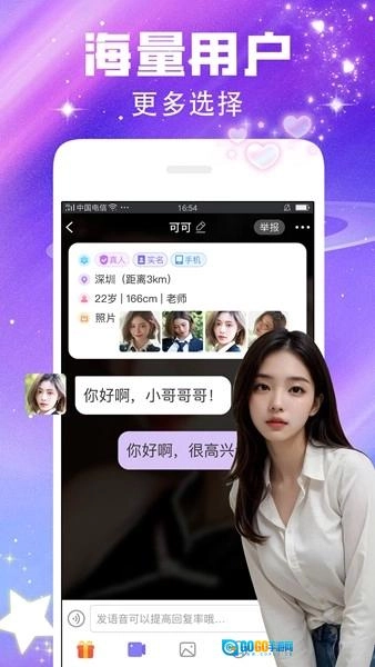 闪恋聊天交友是一款社交恋爱类应用,它为用户搭建了交流的平台,方便单身男女在此轻松交友。软件支持文字、语音、视频等多种沟通方式,还能发布动态并与他人互动,丰富的功能助力用户更快脱单。